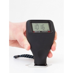 Прибор имеет специальную эргономичную форму, при правильном "профессиональном хвате" толщиномер автоматически подстроится под угол плоскости измеряемой детали, а V-образный паз поможет более точно произвести измерения на изгибах и заворотах. Основание толщиномера выполнено из пластика и не царапает лакокрасочное покрытие.
